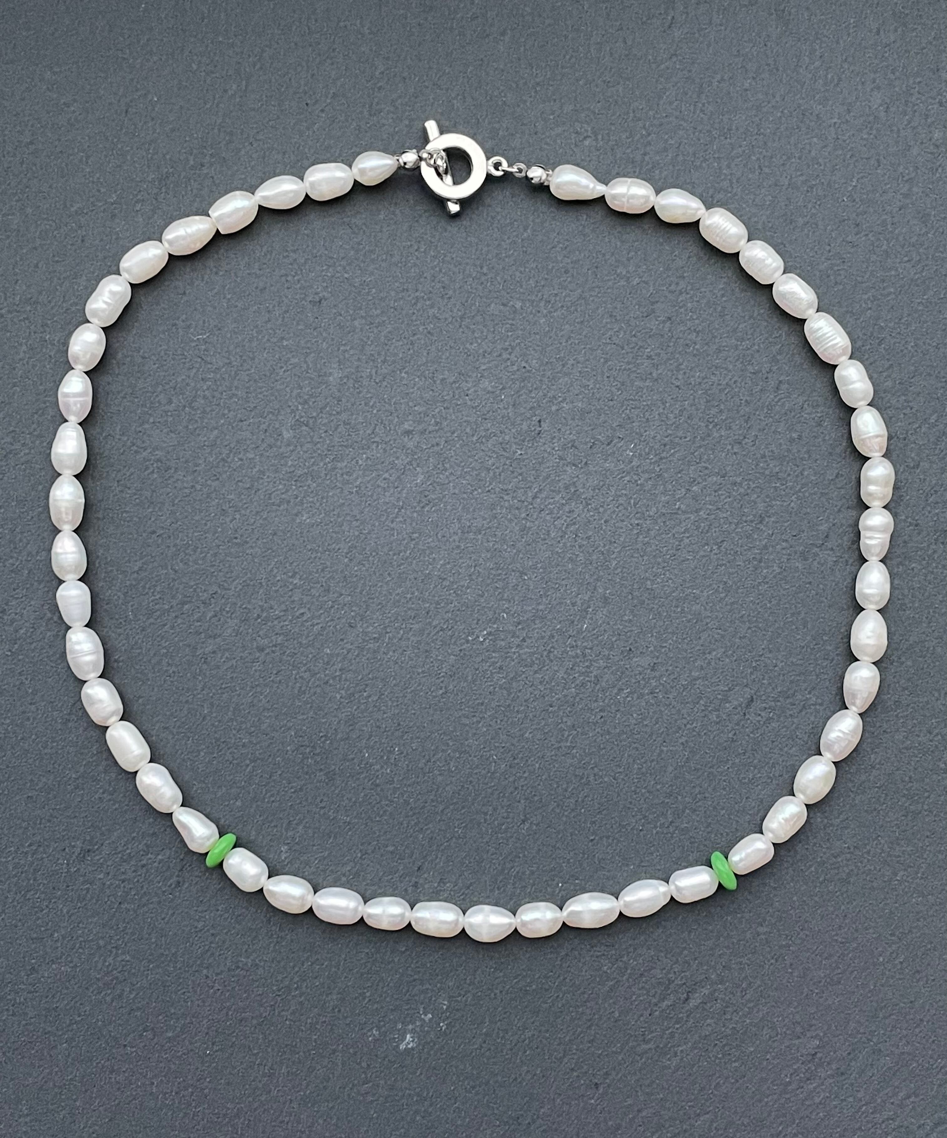 name:Rice pearl necklace green