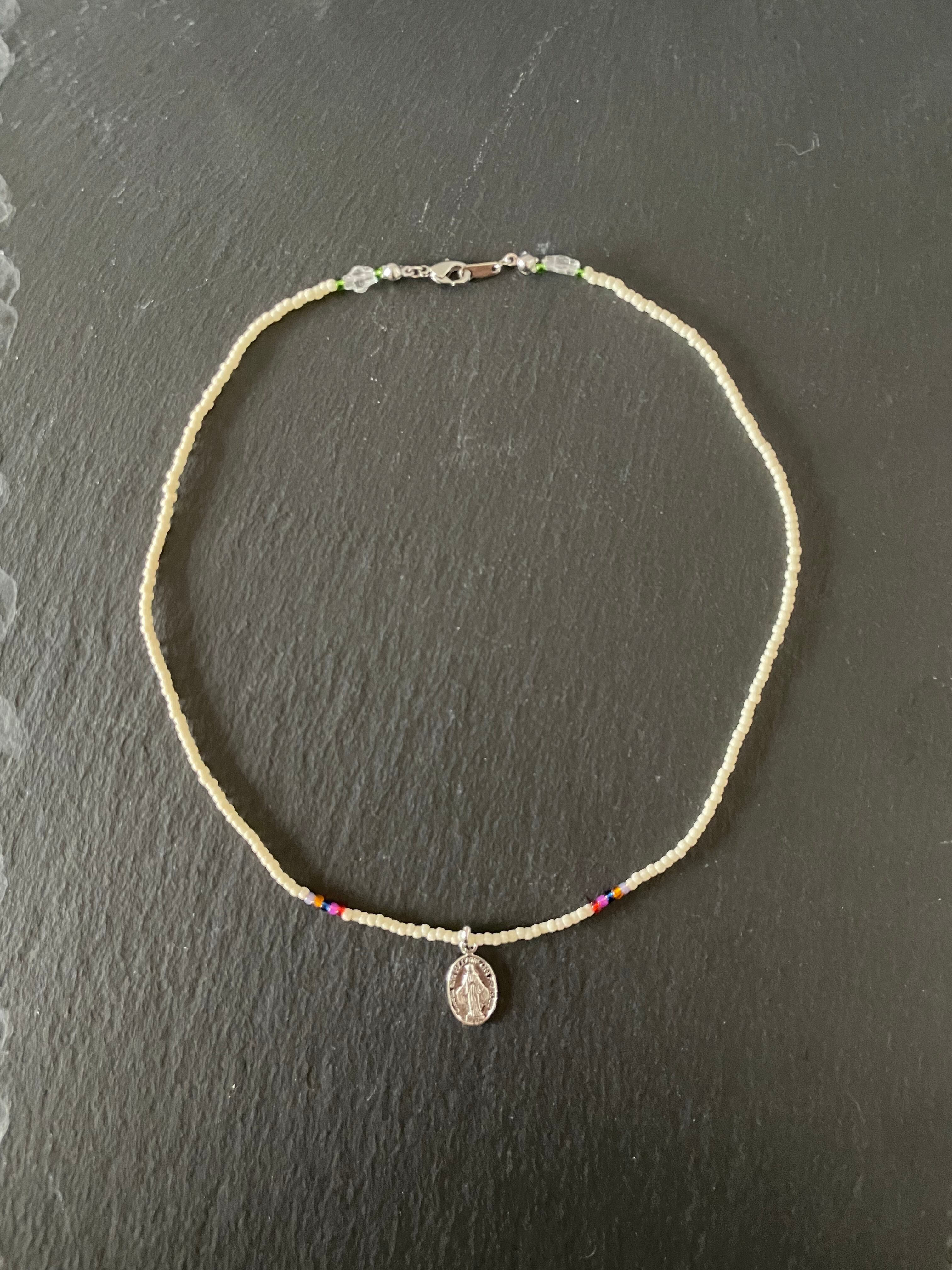 ポイントになるメダイとヴィンテージビーズを合わせたネックレスです。